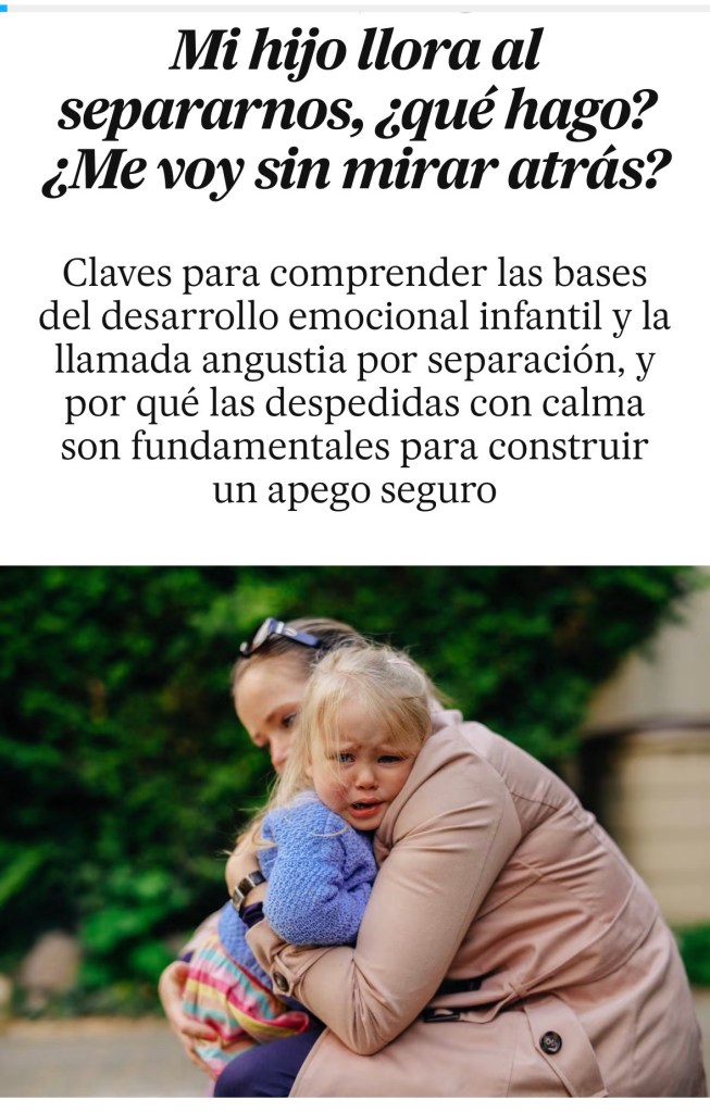 Hay una etapa donde los niños lloran al separarse de sus figuras de apego. Esto se denomina ansiedad por separación y forma parte del desarrollo natural del niño en estés etapa.