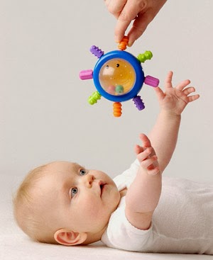 - En decúbito supino ofrecerle objetos un poco más lejos, viendo como extiende sus brazos para intentar cogerlos