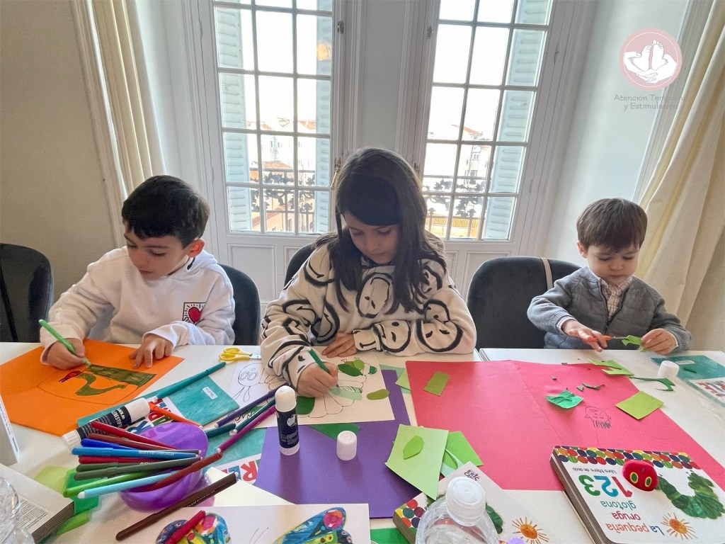 Fue un evento pensado para toda la familia. Primero pudimos descubrir los diferentes títulos de Eric Carle, que van a ir saliendo a lo largo de los próximos meses con Beascoa y después los peques, acompañados de varias talleristas y los padres, hicieron una manualidad basada en el best seller del autor: La pequeña oruga glotona.