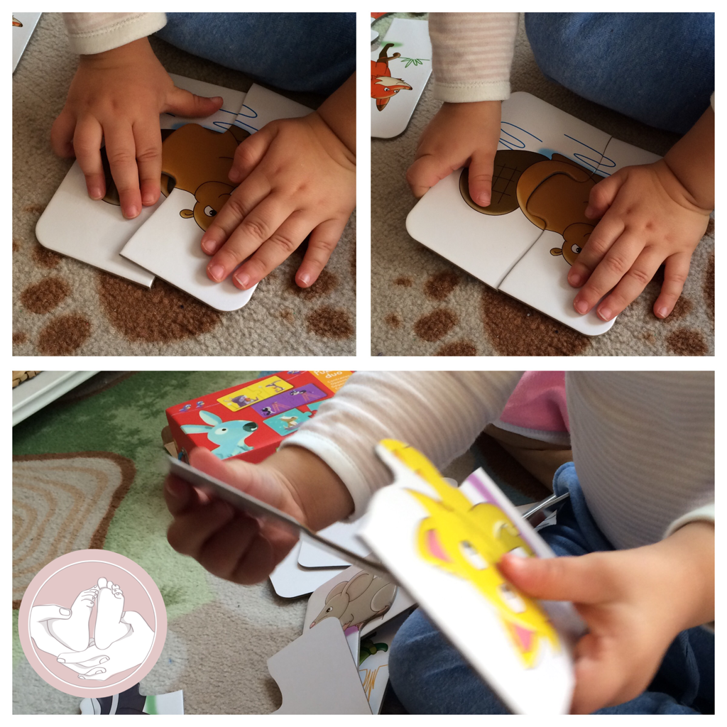 Estas piezas son geniales para empezar a trabajar la unión de dos piezas en puzle, ya que no encajan uniéndolas en el mismo plano, sino que hay que elevar una sobre otra para poder encajarlas, algo que es esencial en este proceso. Las piezas no deben encajar al chocarlas entre sí, sino que debe elevarse una sobre la otra para que conecten.